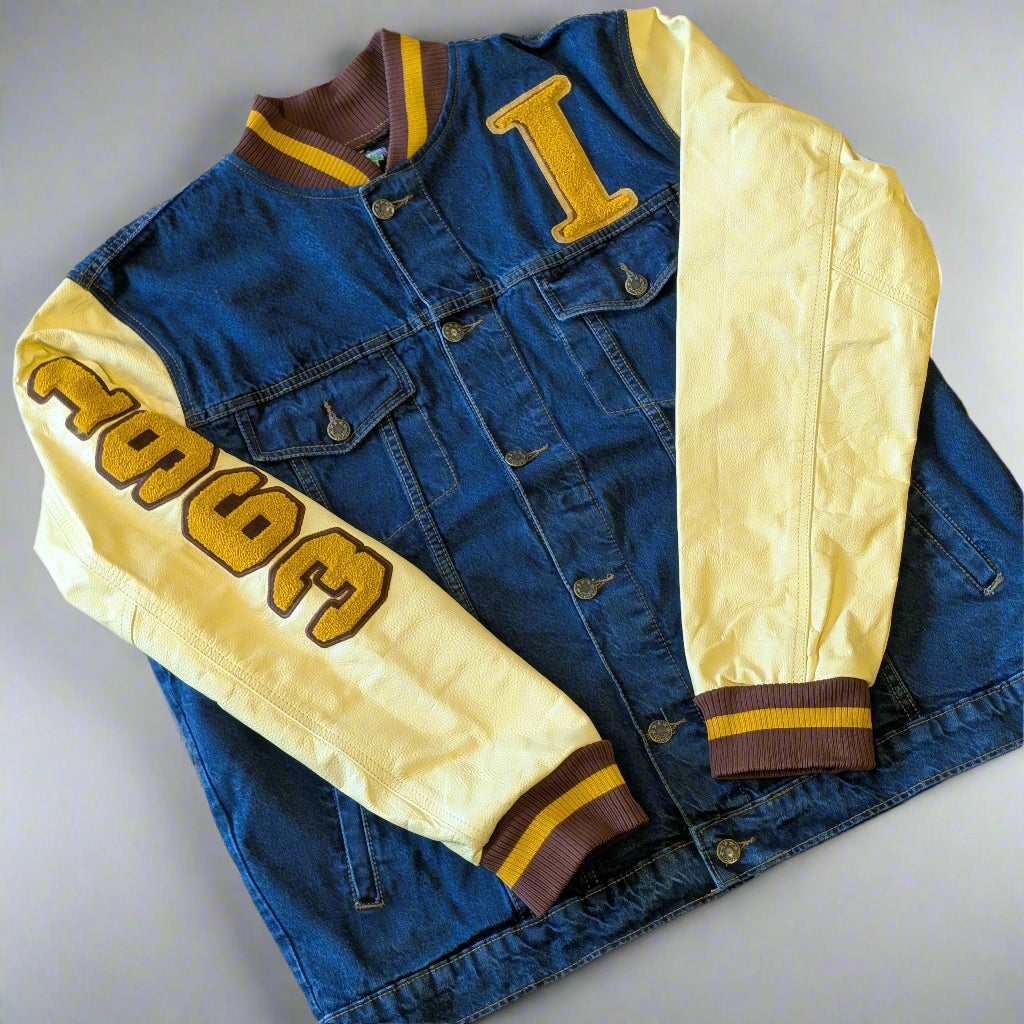 Iota Phi Theta Denim Varsity Jacket – Classic Greek Style with a Modern Edge Represent...