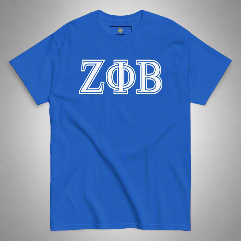 This t-shirt displays the Greek letters representing Z Phi Beta.