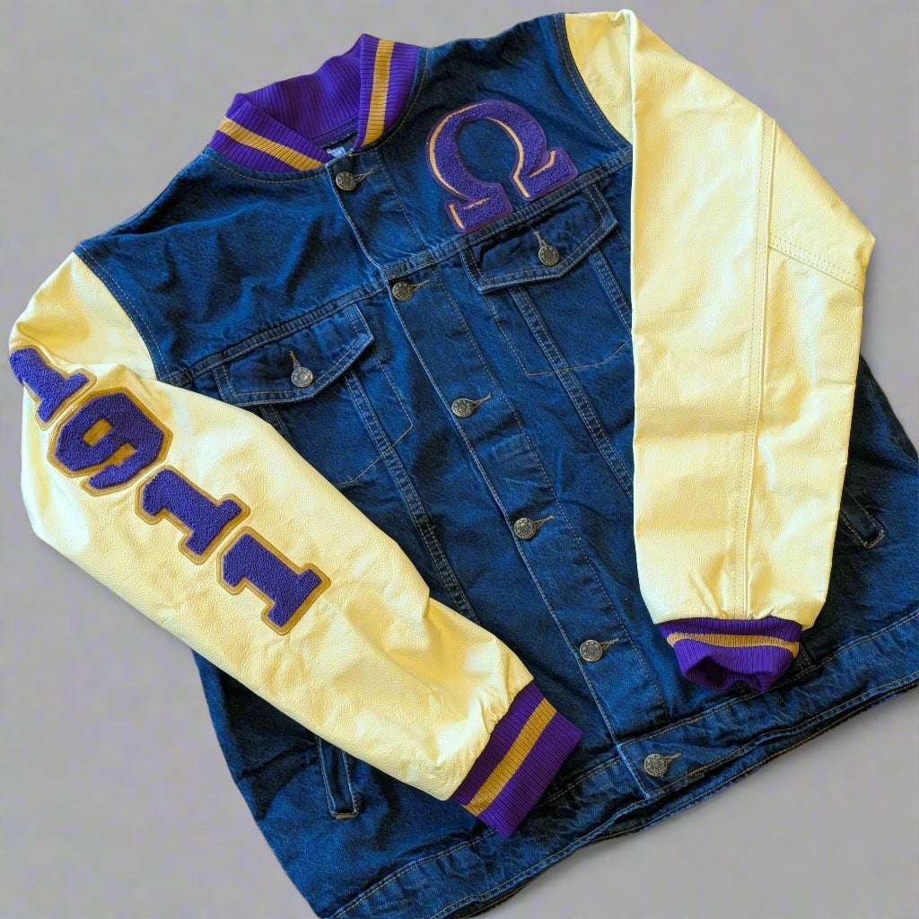 Omega Psi Phi Denim Varsity Jacket – Bold Que Style Rooted in Brotherhood and Legacy...