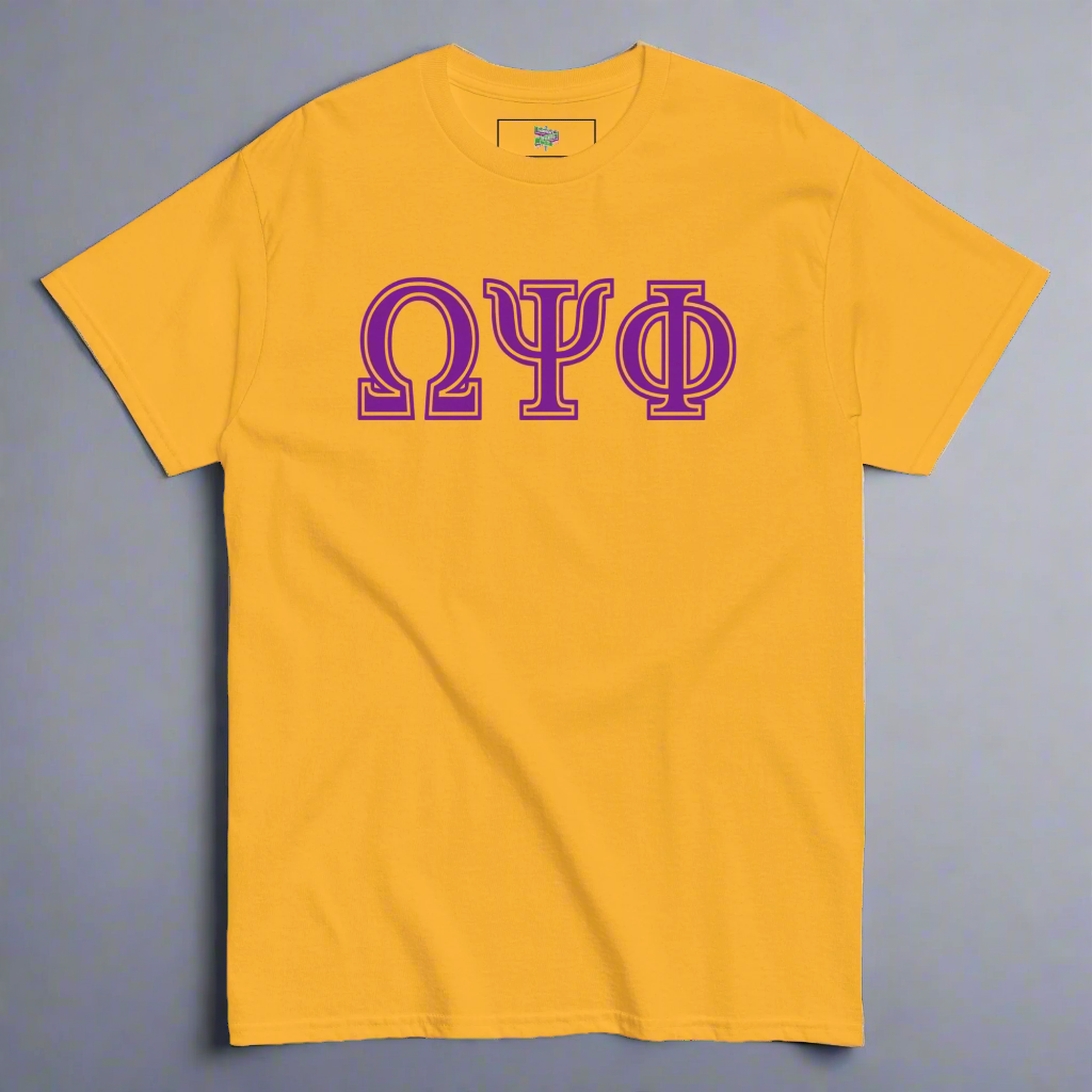 This t-shirt proudly presents the Greek letters of Omega Psi Phi, designed for its distinguished...