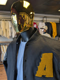 Upgrade your style with the Alpha Big Motion Varsity Jacket. Show off your fraternity pride with the embroidered chenille patch "A". This jacket is also customizable, adding a personal touch to your look. Make a statement with each wear.