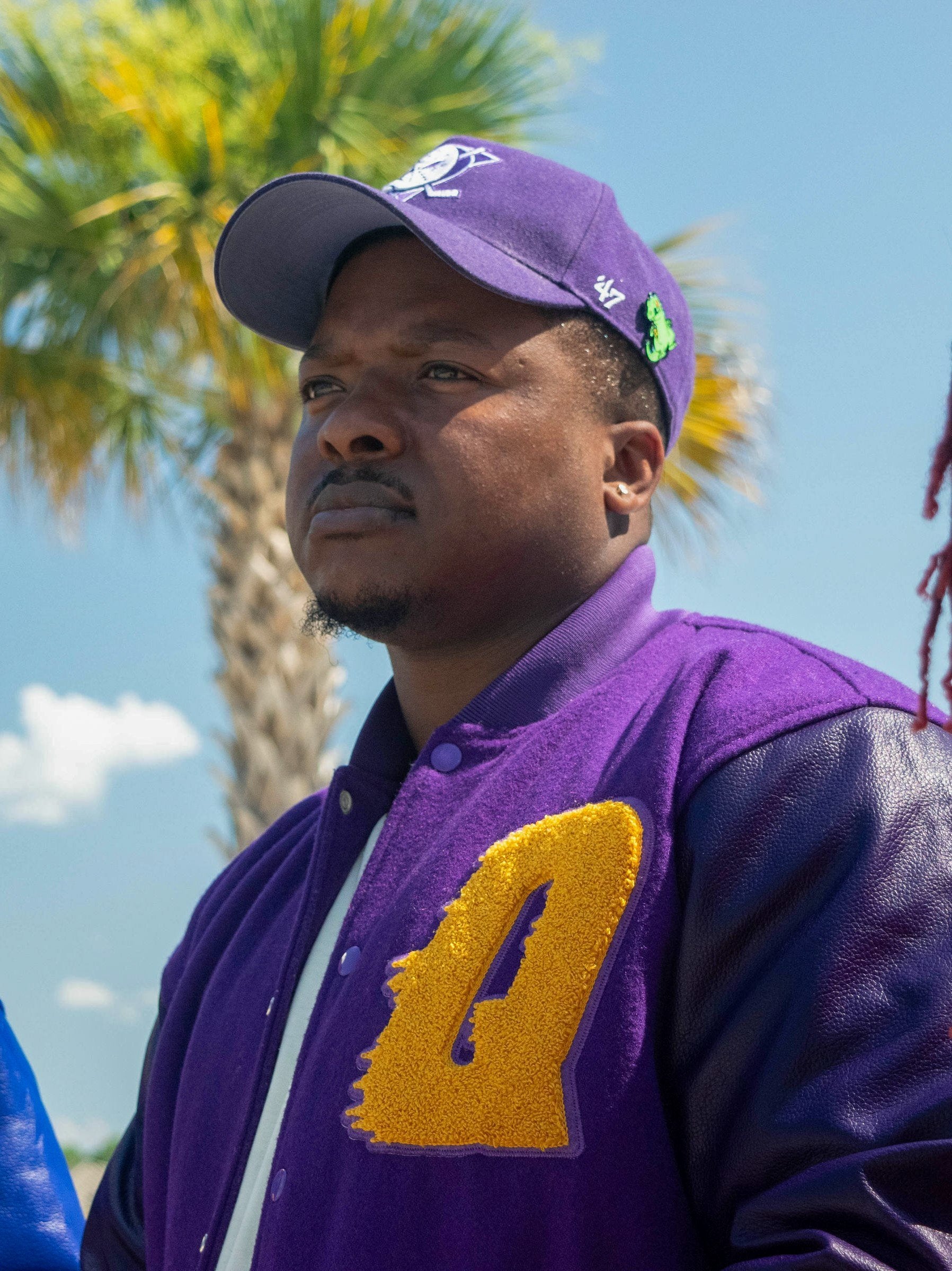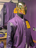 Upgrade your style with the Omega Big Motion Varsity Jacket. Show off your fraternity pride with the embroidered chenille patch "Q". This jacket is also customizable, adding a personal touch to your look. Make a statement with each wear.
