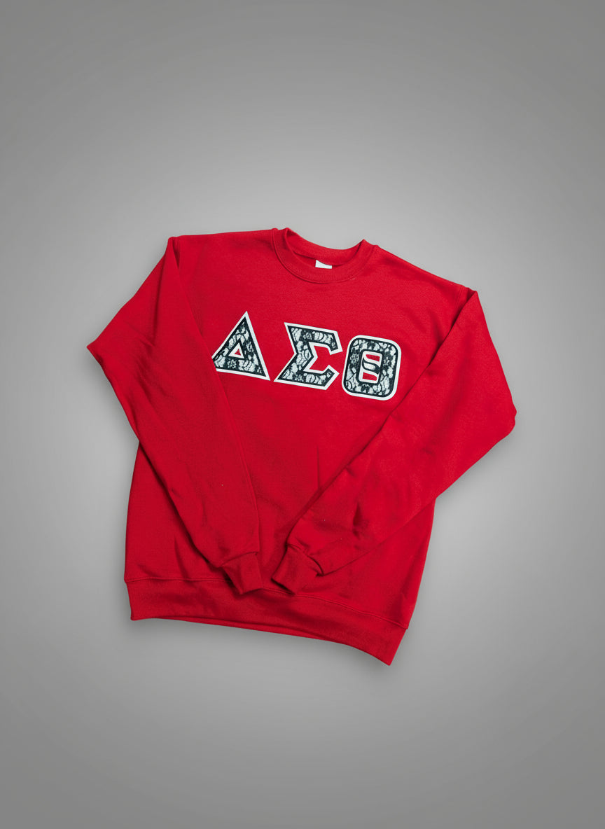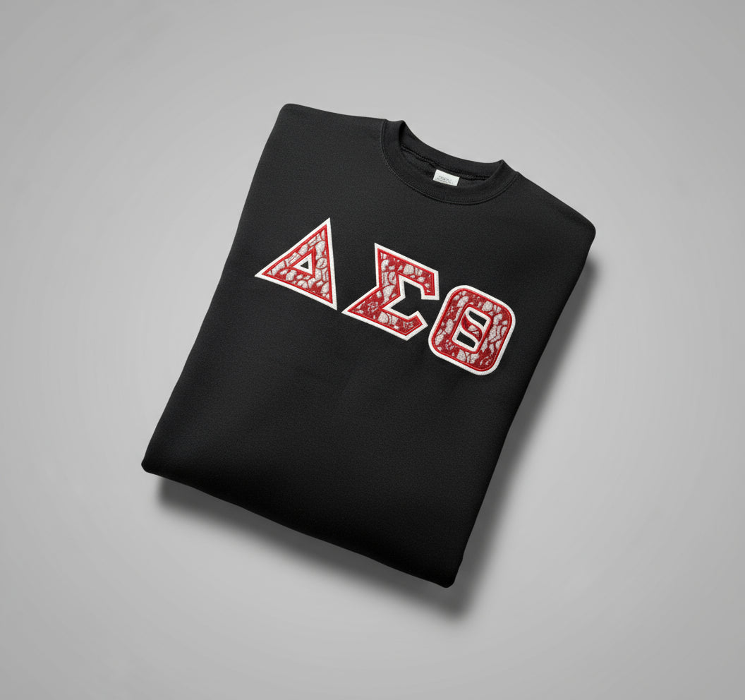 A new approach to your normal Greek lettered Crewneck. This piece of paraphernalia still gives Delta Sigma Theta, while also demanding a second look. The lace letters give a mixture of maturity and class.